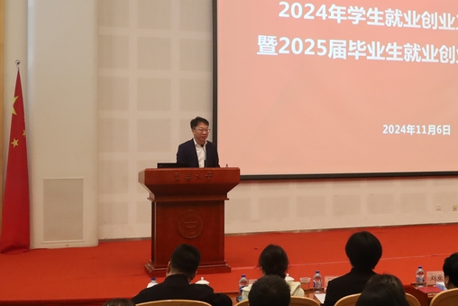 学生就业服务中心主任严军汇报2024年学生就业创业工作总体情况及2025年就业创业工作思考与展望。学院代表、教师代表和辅导员代表作交流发言。